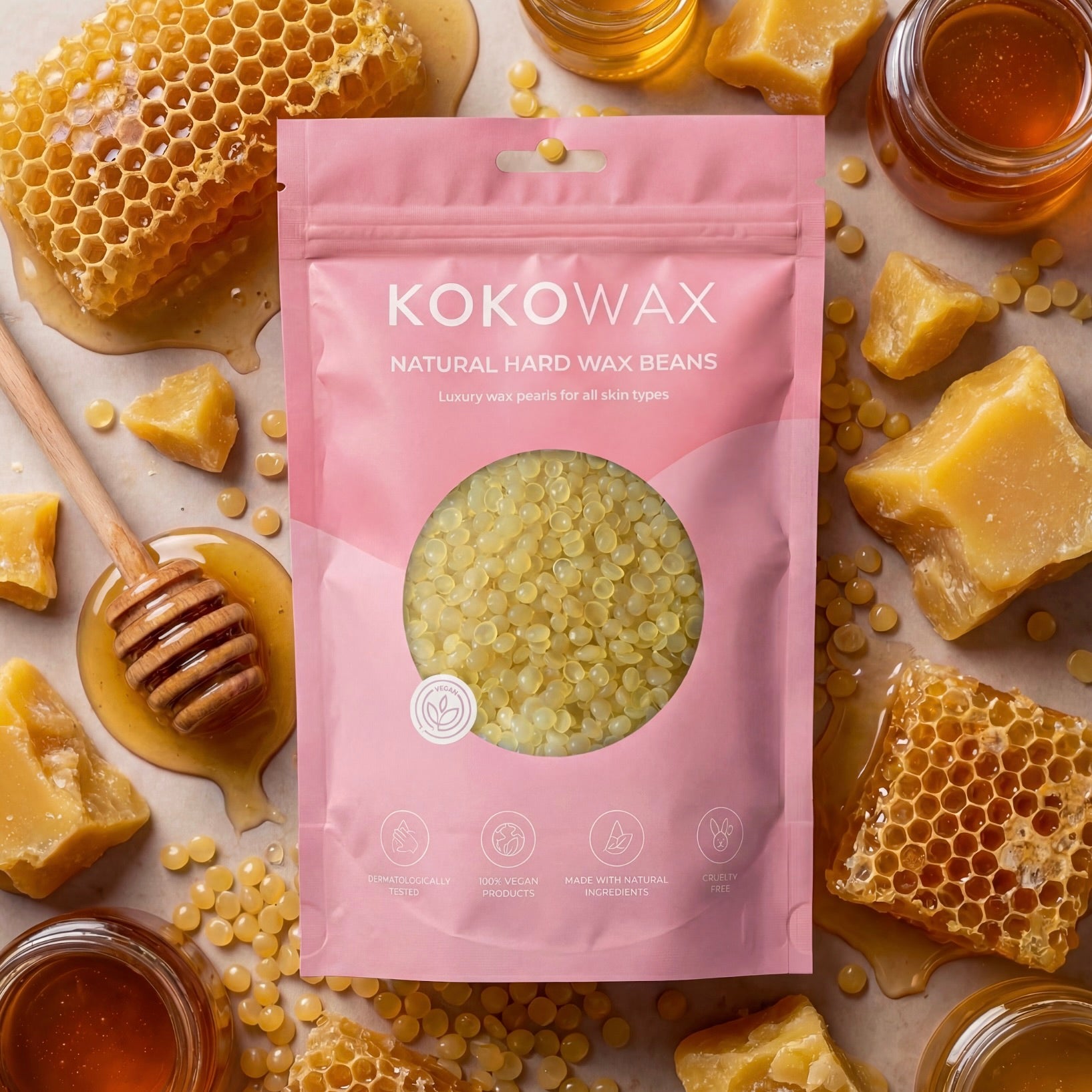 Unser KOKO WAX ist speziell so formuliert, dass er sanft zur Haut, aber effektiv zu den Haaren ist, für ein möglichst angenehmes Waxing-Erlebnis.
